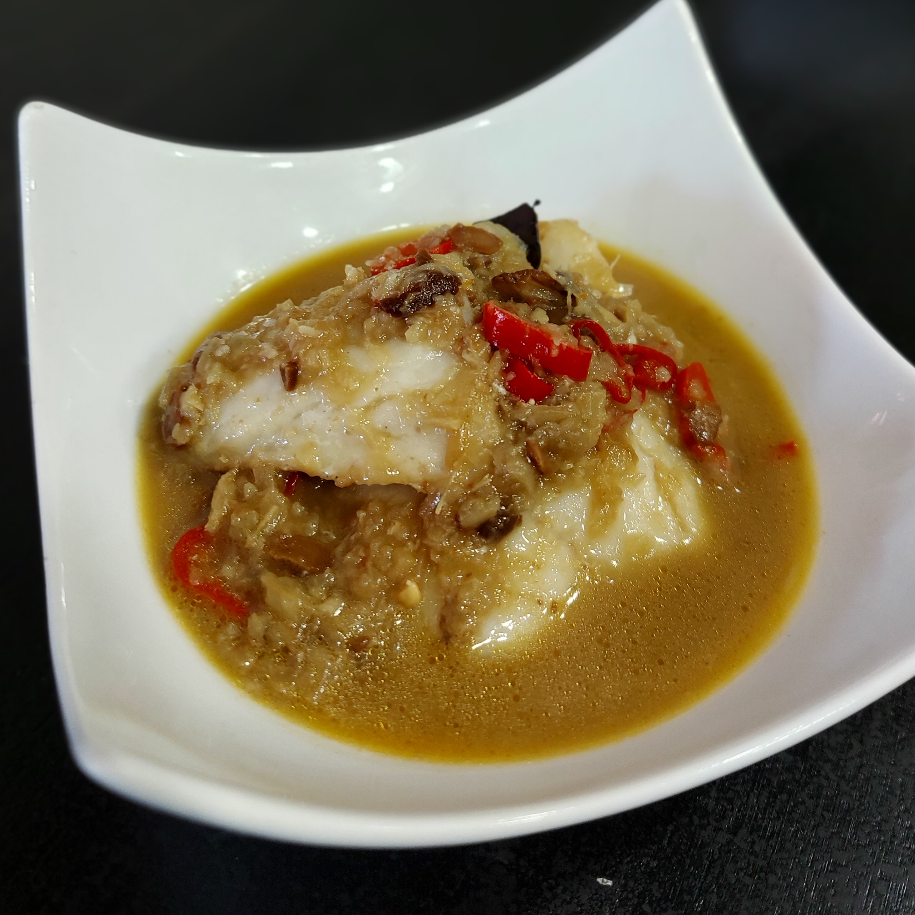 Gulay Ikan Taotjo, filetes de pescado blanco en salsa de curry con pasta de soja fermentada