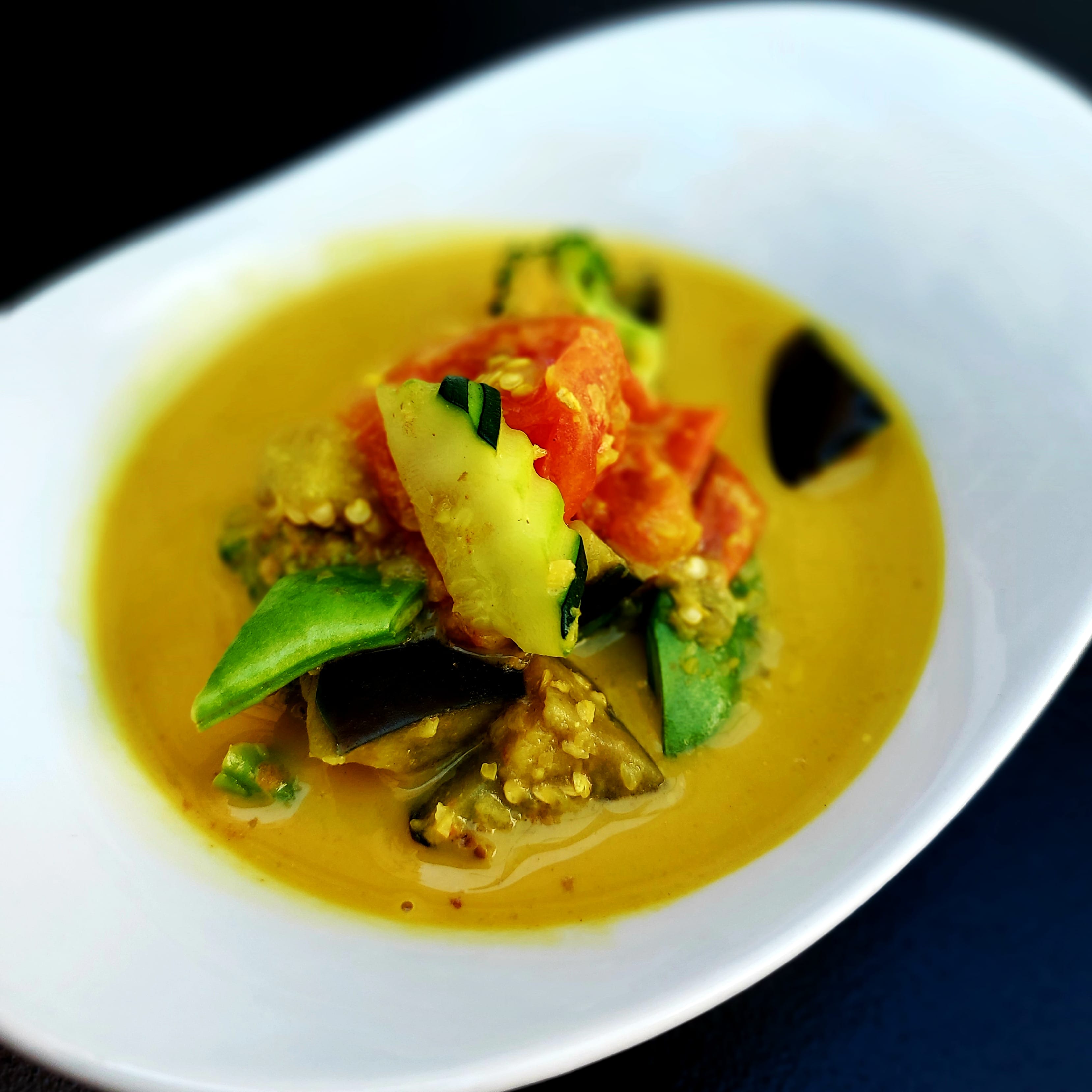 Sayur lodeh, verduras mixtas en salsa de coco con pasta de camarones